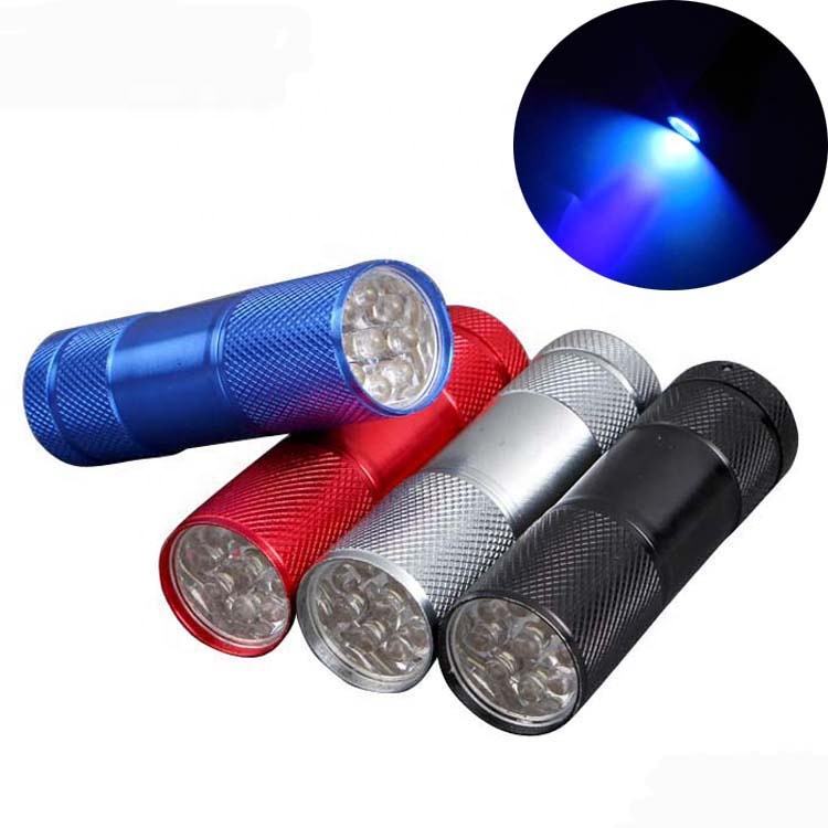 Lampe torche ultraviolette violette fluorescente, mini lampe de poche en aluminium noir Ultra Violet 395nm 9 LED UV