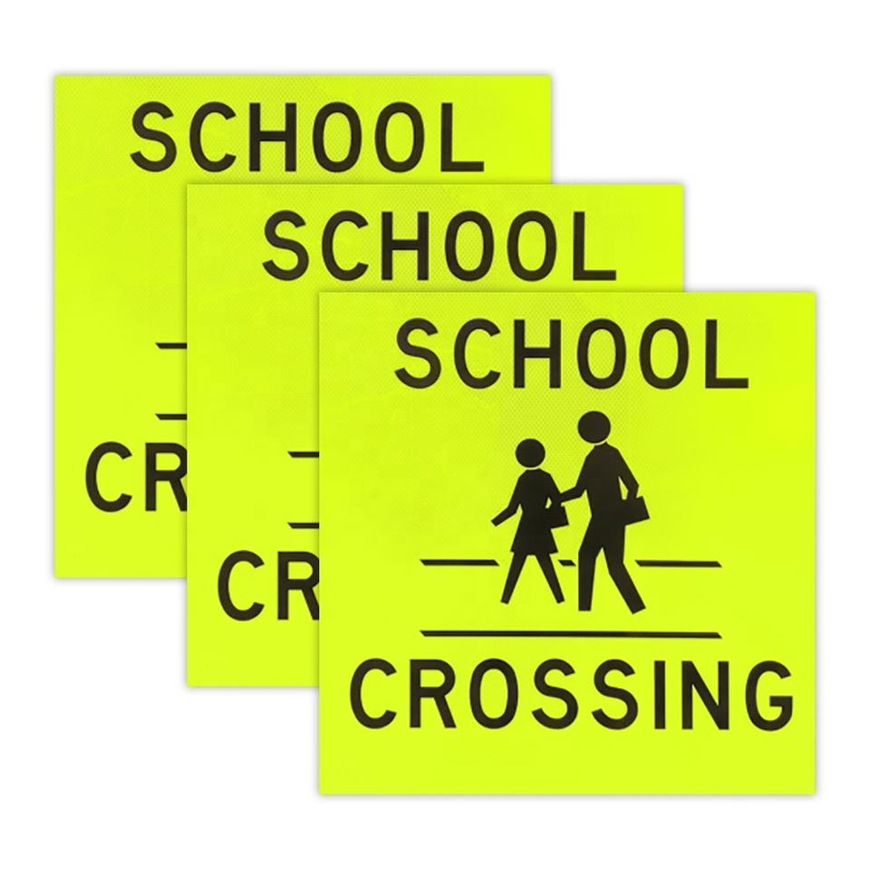 Autocollant de signe de croisement d'école réfléchissant micro prismatique jaune fluorescent