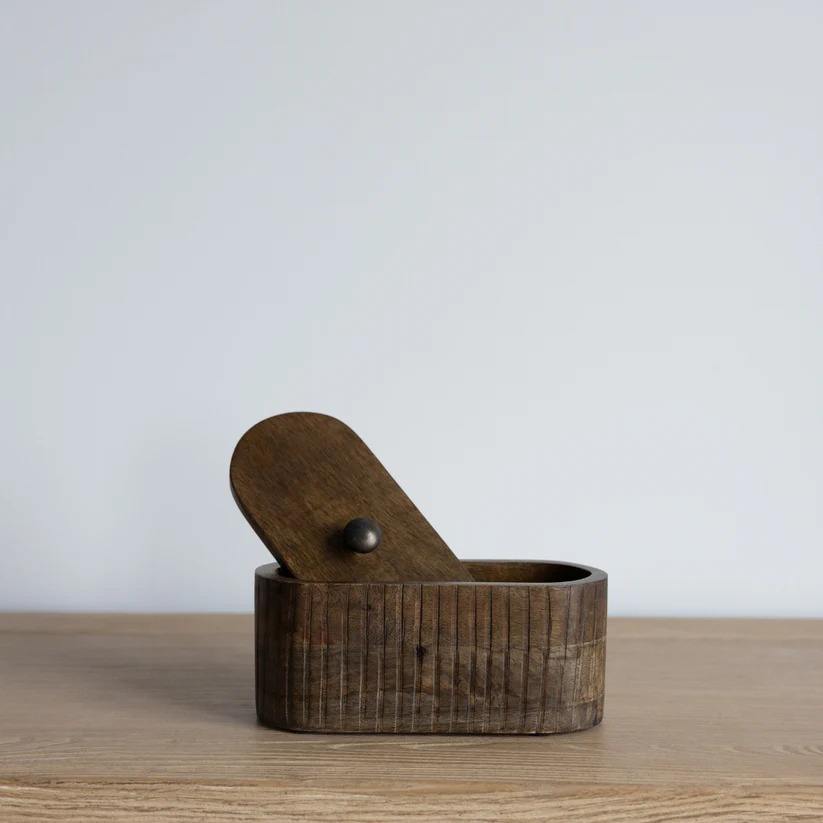 Boîte en bois de manguier cannelé