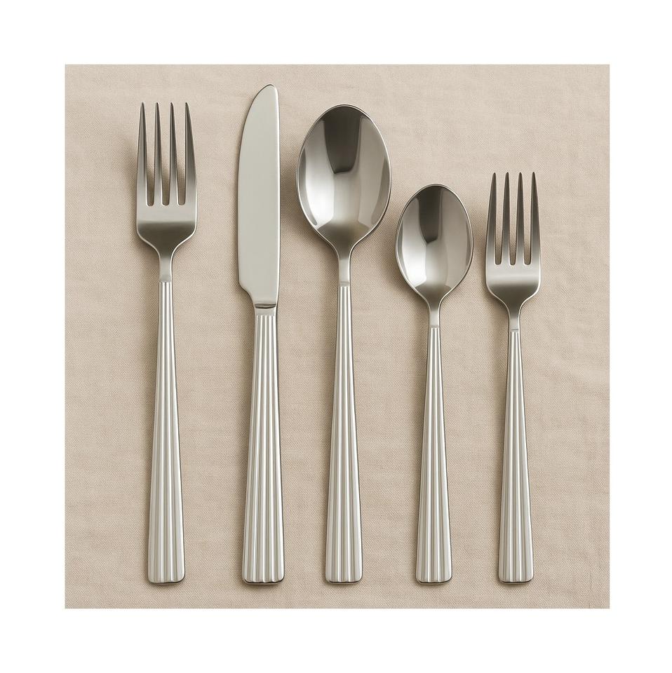 Ensemble de couverts en acier inoxydable à rayures cannelées, lot de 5 couverts à finition miroir, ustensiles élégants en argent pour la maison, la cuisine et le mariage