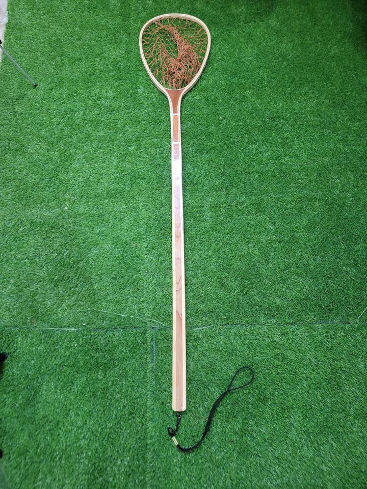 Pêche à la mouche épuisette manche en bois cadre attraper et libérer filet Portable léger en caoutchouc filet de pêche filet à truite