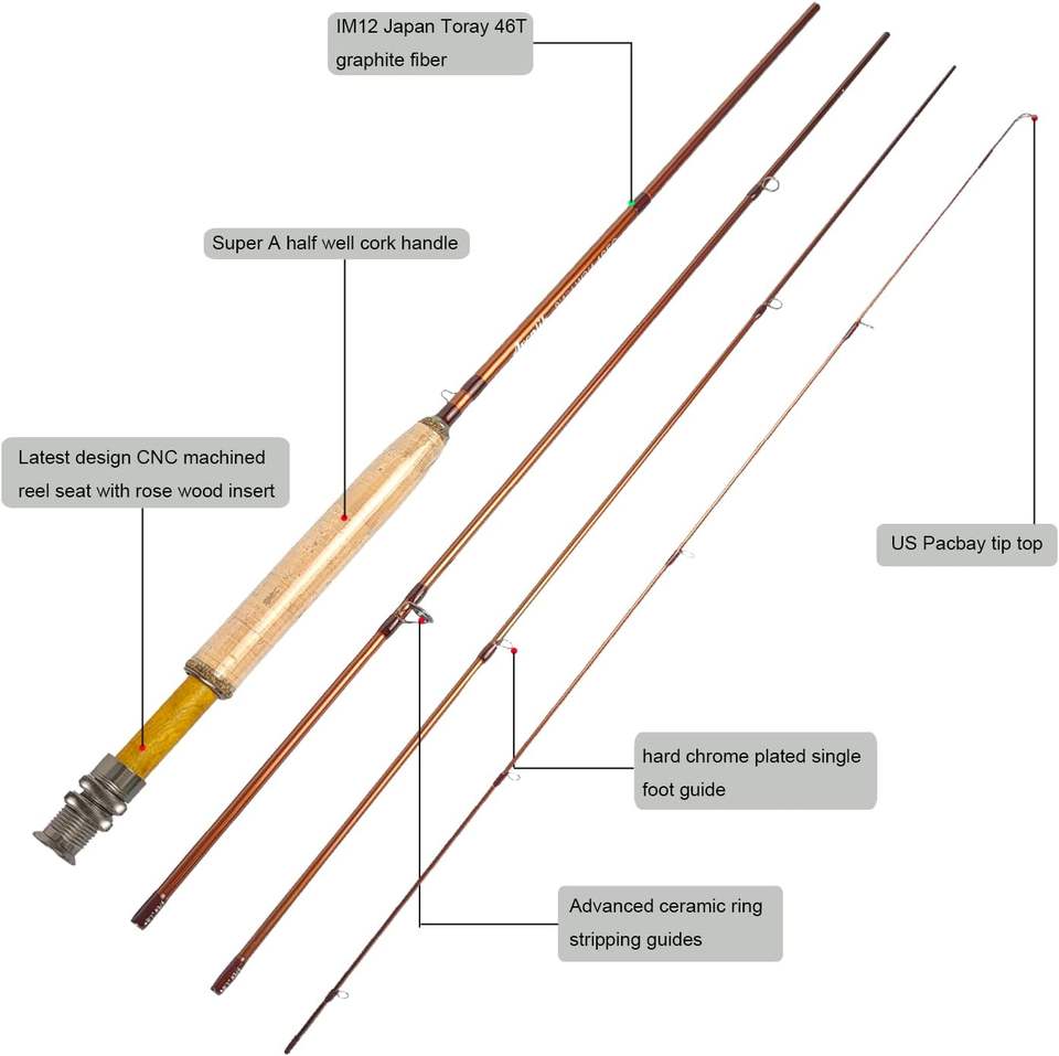 Fly Rod and Reel Combo 8'1'' 3/4 Weight Carbon Fiber Fly Fishing Starter Kit Lightweight Fly Fishing Set (B02)