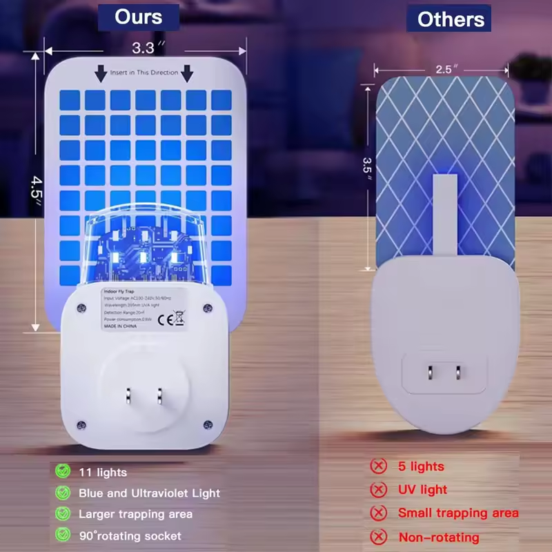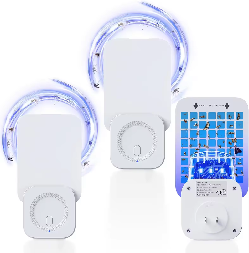 Piège à mouches d'intérieur (1 appareil + 5 cartes à colle) Piège à moucherons collant pour mouches, mouches à fruits, mites