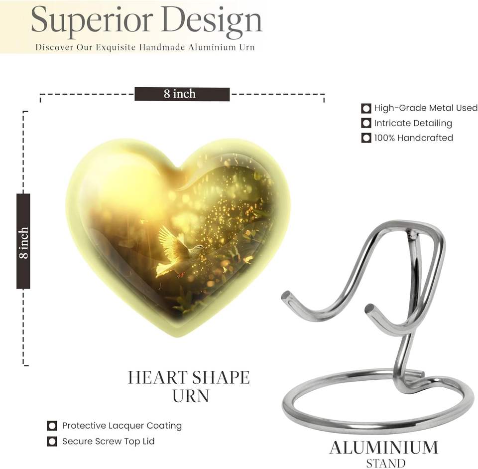 Flying Urn With Doves- Heart Shaped Urn for Human Ashes, 10 Inch Urn,