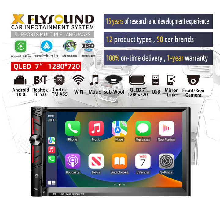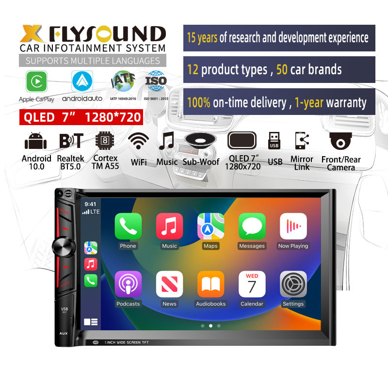 Flysonic Upgrade QLED 7 Pouces 1280x720 Écran Radio Voiture Android Système 2 Din Navigation Lecteur DVD Voiture