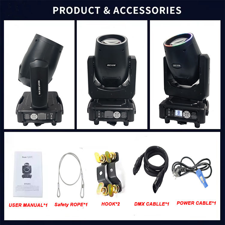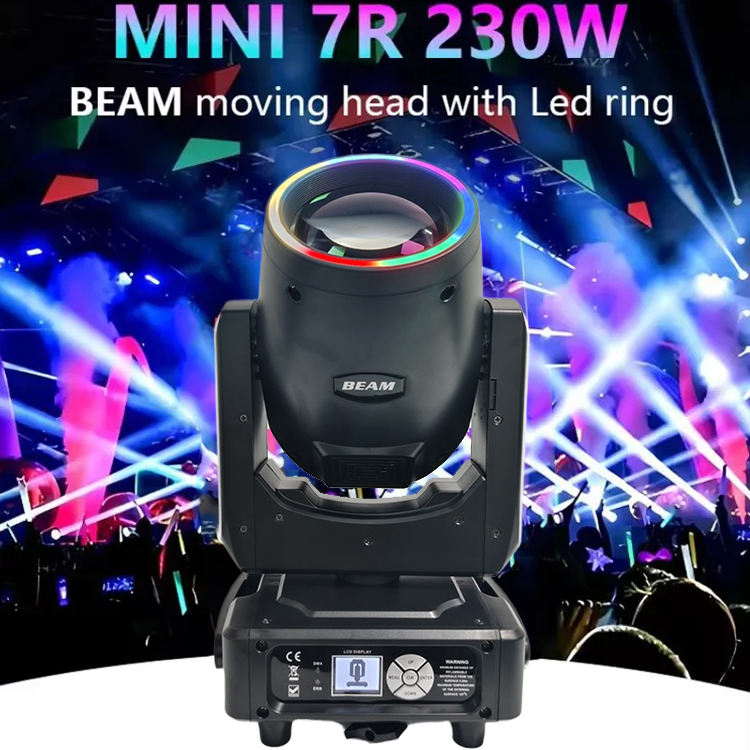 Lyre DMX512 Flystar 230W Mini 7R à tête mobile LED avec anneau pour scène DJ, idéale pour mariages, fêtes, événements, clubs et applications en entrepôt