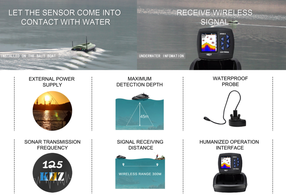 Nom du produit:Détecteur de poisson sans fil 300M avec support de capteur de caméra, bateau d'appât de carpe, GPS