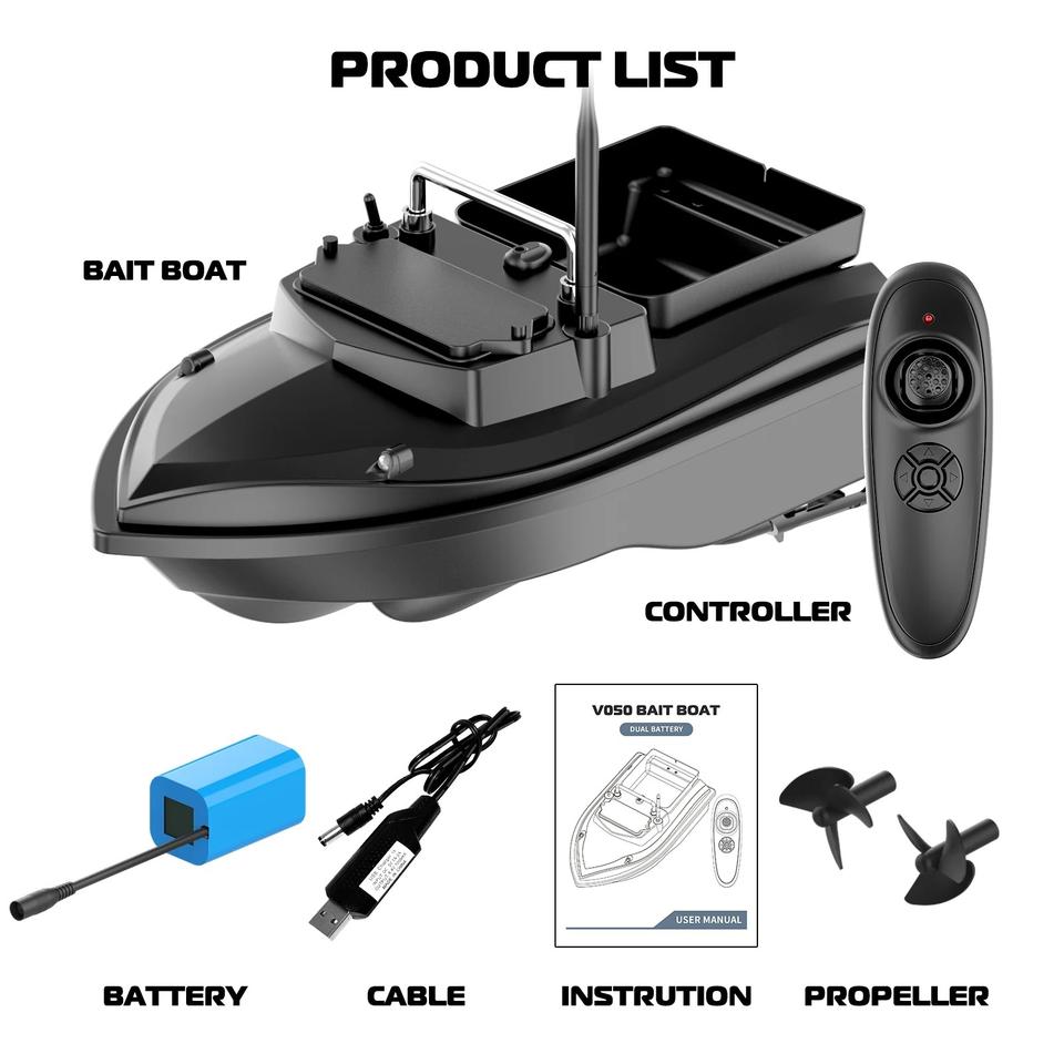 Nom du produit:Bateau de pêche RC V050, bateau amorceur, piège à carpe, réservoir d'appâts de 2 kg (4,4 lbs)