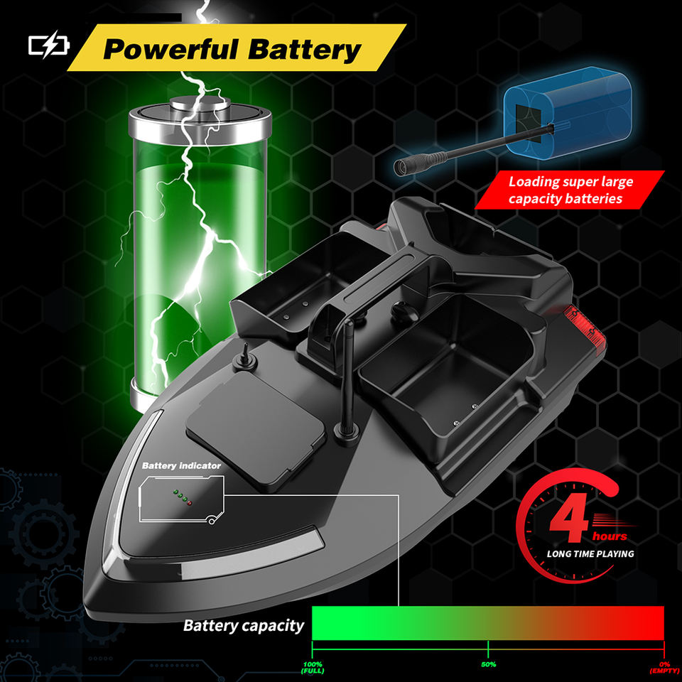 Bateau d'appâtage RC intelligent Flytec V801 500M à 3 compartiments pour la pêche à la carpe avec double moteur