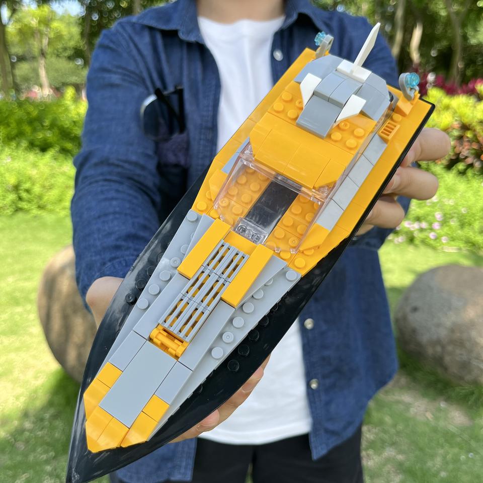 Bateau télécommandé Flytec Y101 DIY 4 en 1, blocs de construction, kits de briques, jouets avec télécommande 2,4 GHz et 60 minutes de jeu