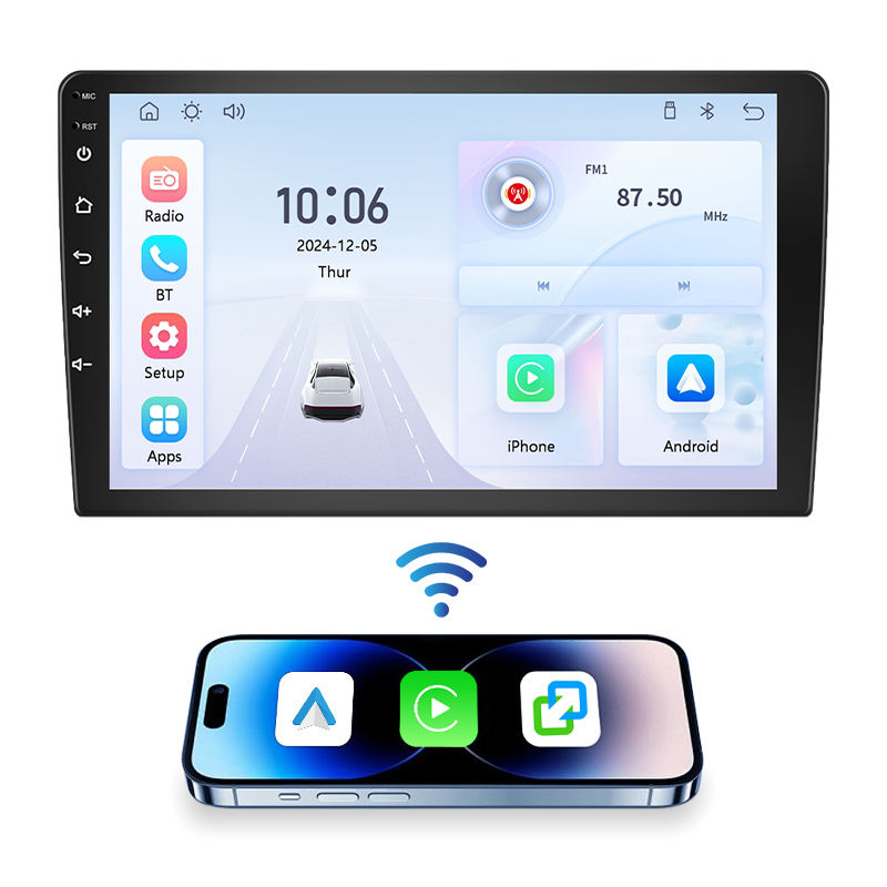 Autoradio FM AM 9 pouces 10 pouces Lecteur MP5 1 Din CarPlay sans fil Android Auto BT Mirror Link GPS Unité multimédia