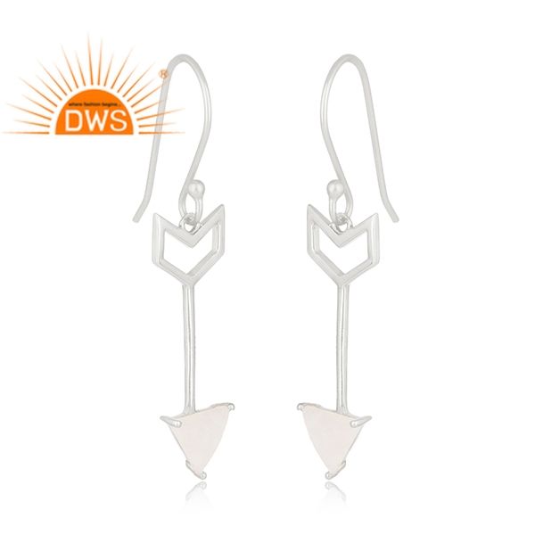 Focused Arrow Shape 925 Silver Dangle Earrings Wholesale Rainbow Moonstone Gemstone Earrings Jewelry