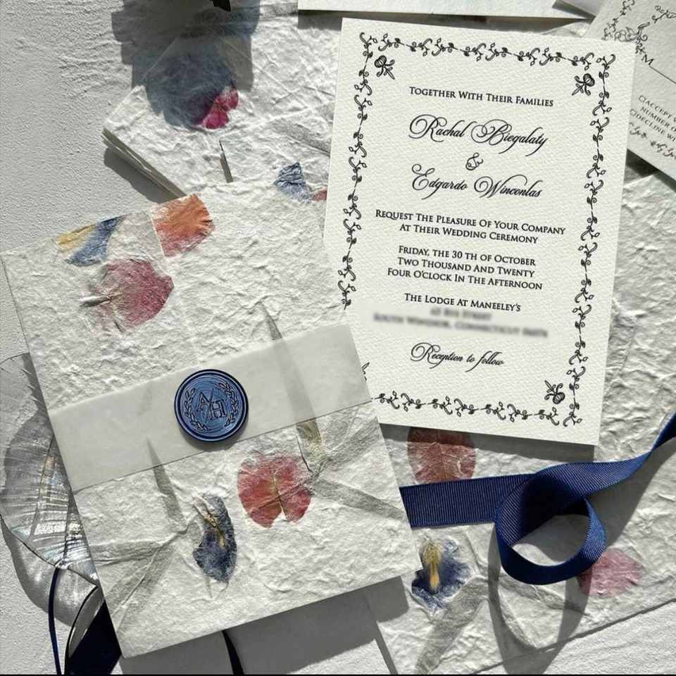 Suite d'invitations de mariage en relief et dorées, ensemble complet personnalisé pour la fourniture B2B