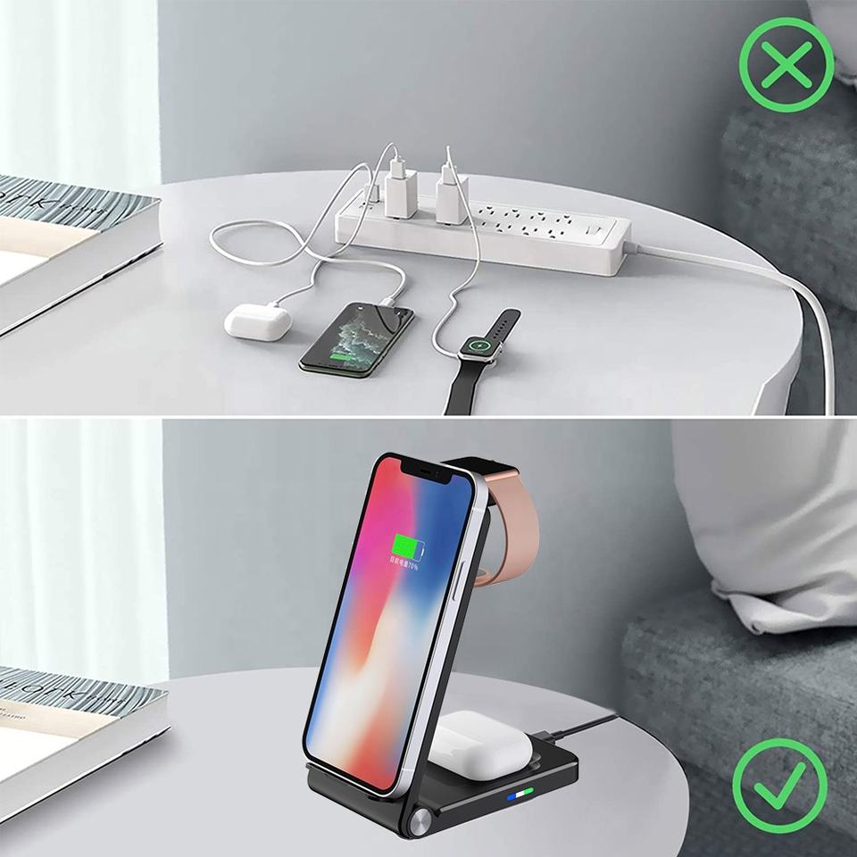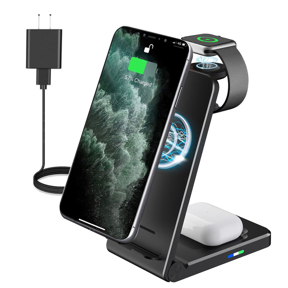 Station de charge sans fil pliable 15W pour iPhone/pour Apple Watch/pour Air Pods