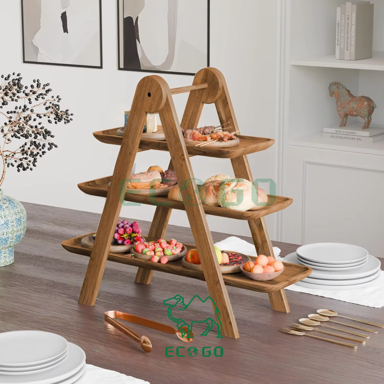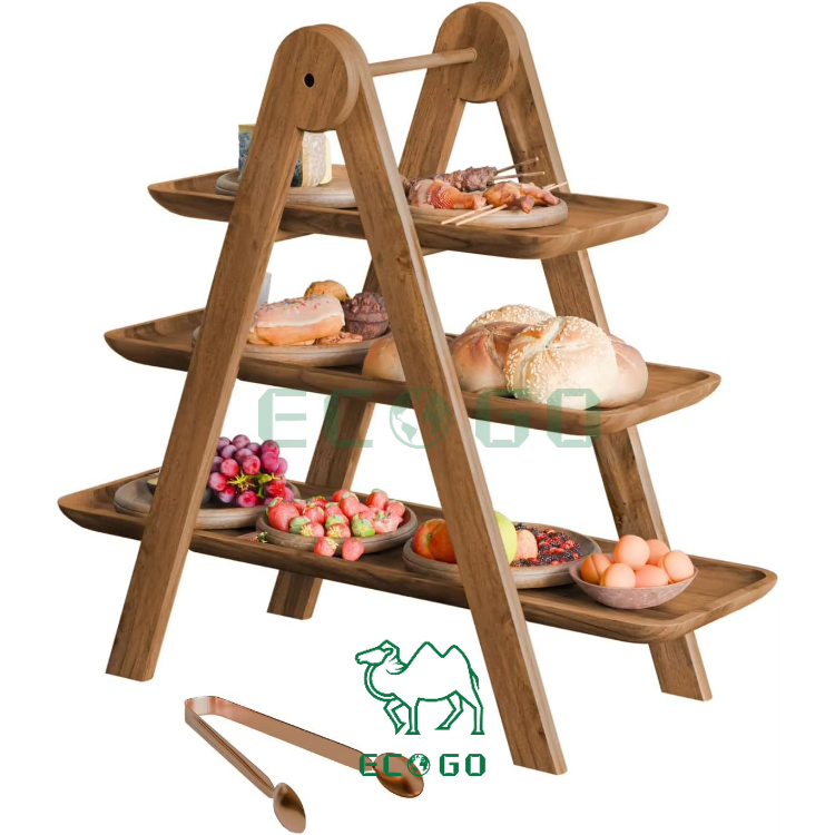 Présentoir à gâteau en bois pliable à 3 niveaux, cuisine empilable, réunion de famille, plateau de service détachable à 3 niveaux