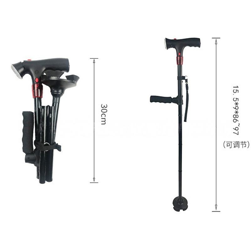 Canne pliable en alliage d'aluminium avec lumière LED et alarme d'urgence, hauteur réglable, aide à la marche, à la position debout et à la position assise