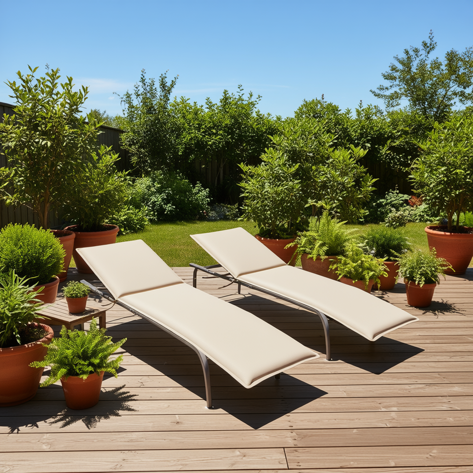 Ensemble de 2 coussins de chaise longue beige 76 x 23, tissu UPF50+ pour chaise longue d'extérieur, pour terrasse
