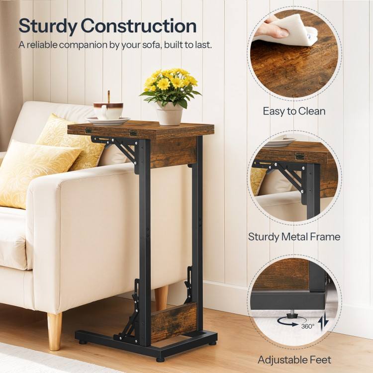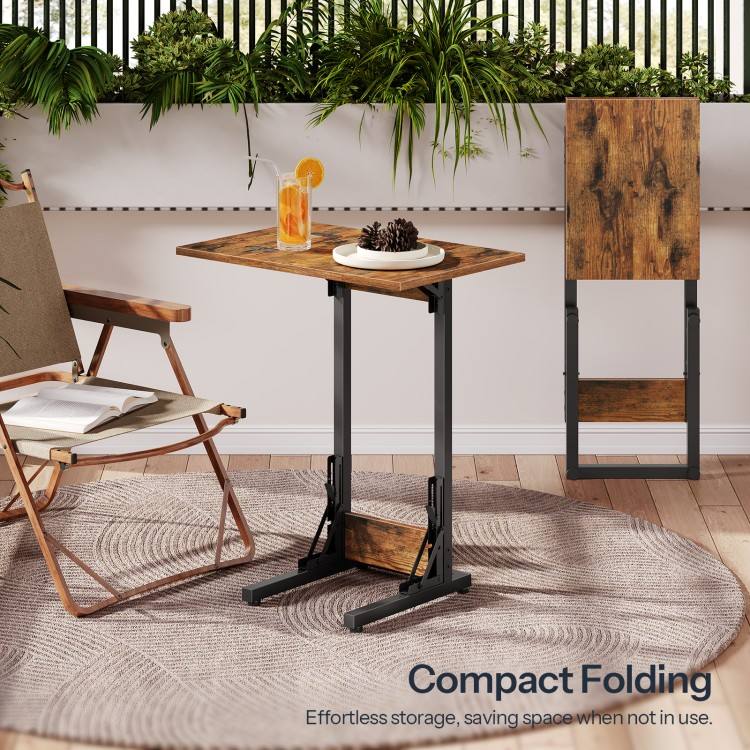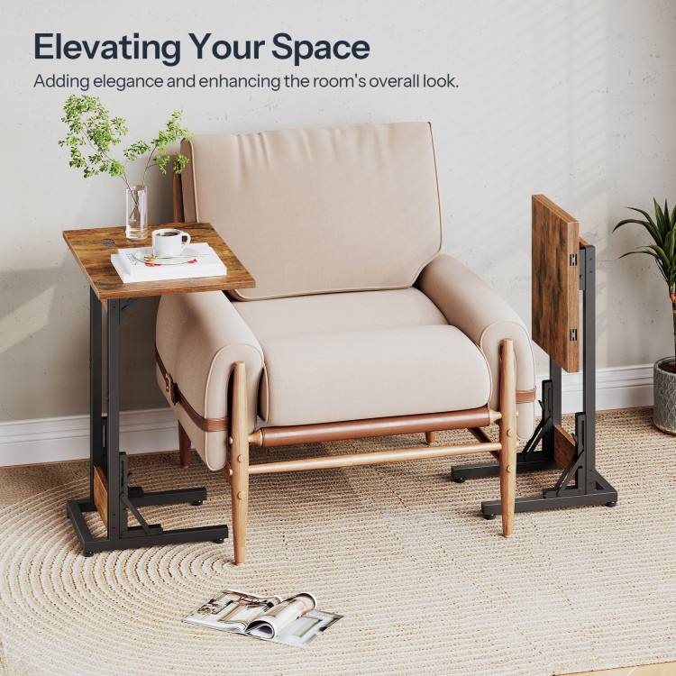 Foldable C-Shaped TV Tray Table Wooden Nightstand Recliner for Bedroom and Living Room Small Bedside for Eating and Relaxing