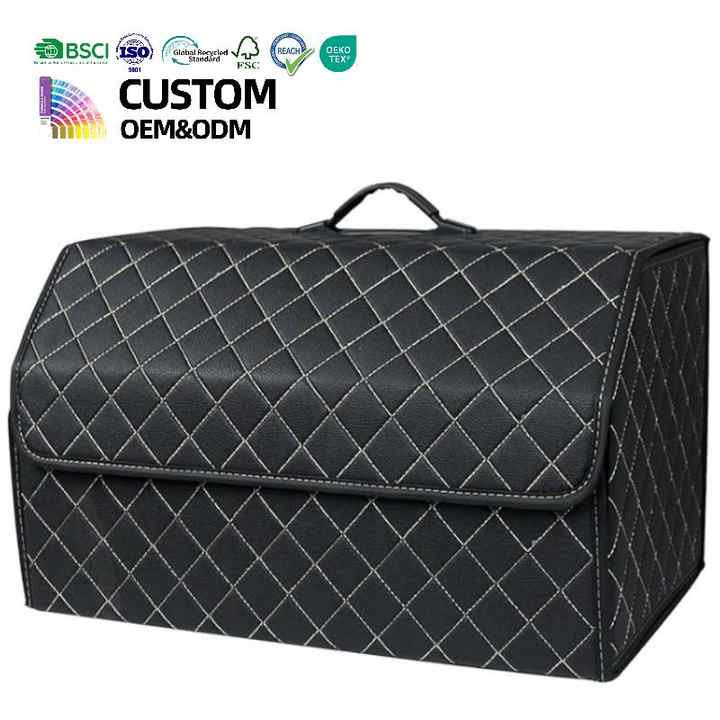 Organisateur de coffre de voiture pliable, boîte de rangement de coffre en cuir PU de luxe imperméable, organisateur de coffre de voiture personnalisé pour SUV