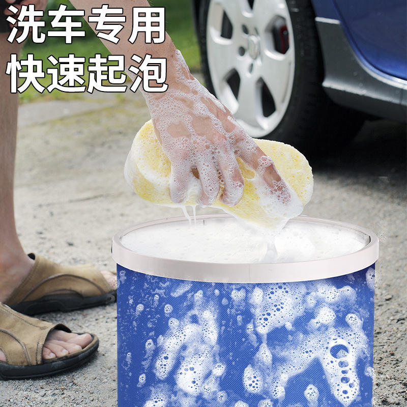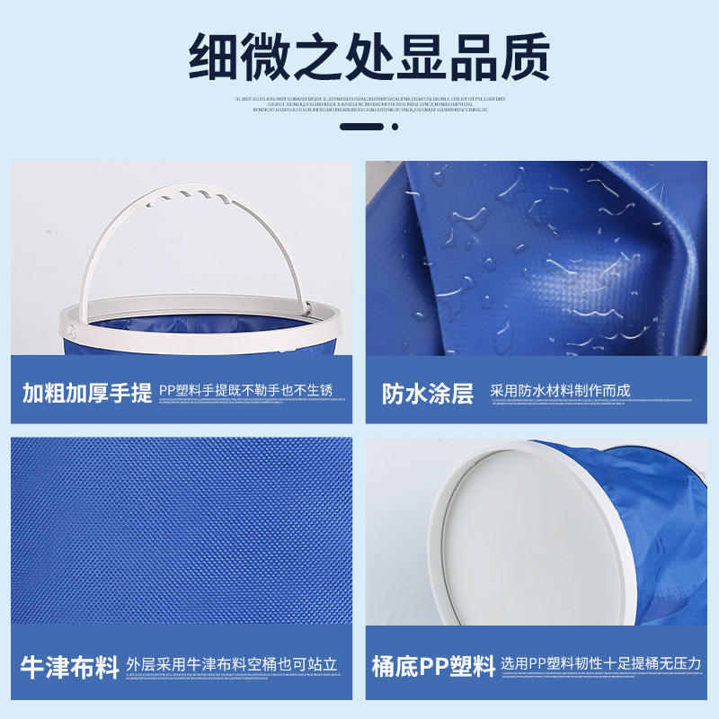 Seau de lavage de voiture pliable 9L en tissu Oxford bleu, outil de lavage portable pour le nettoyage de voiture et la pêche en extérieur