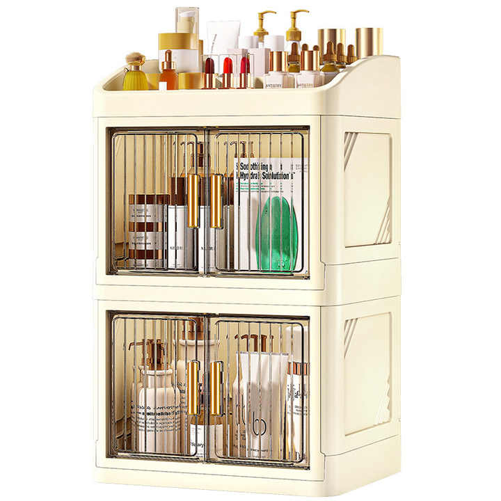 Organisateur de maquillage pliable en plastique transparent, tiroir rotatif de bureau, boîte de rangement de cosmétiques multifonction de luxe, boîte de rangement pour dortoir