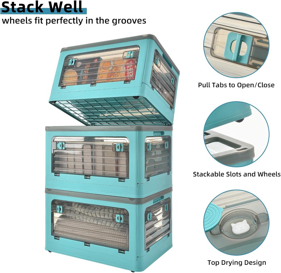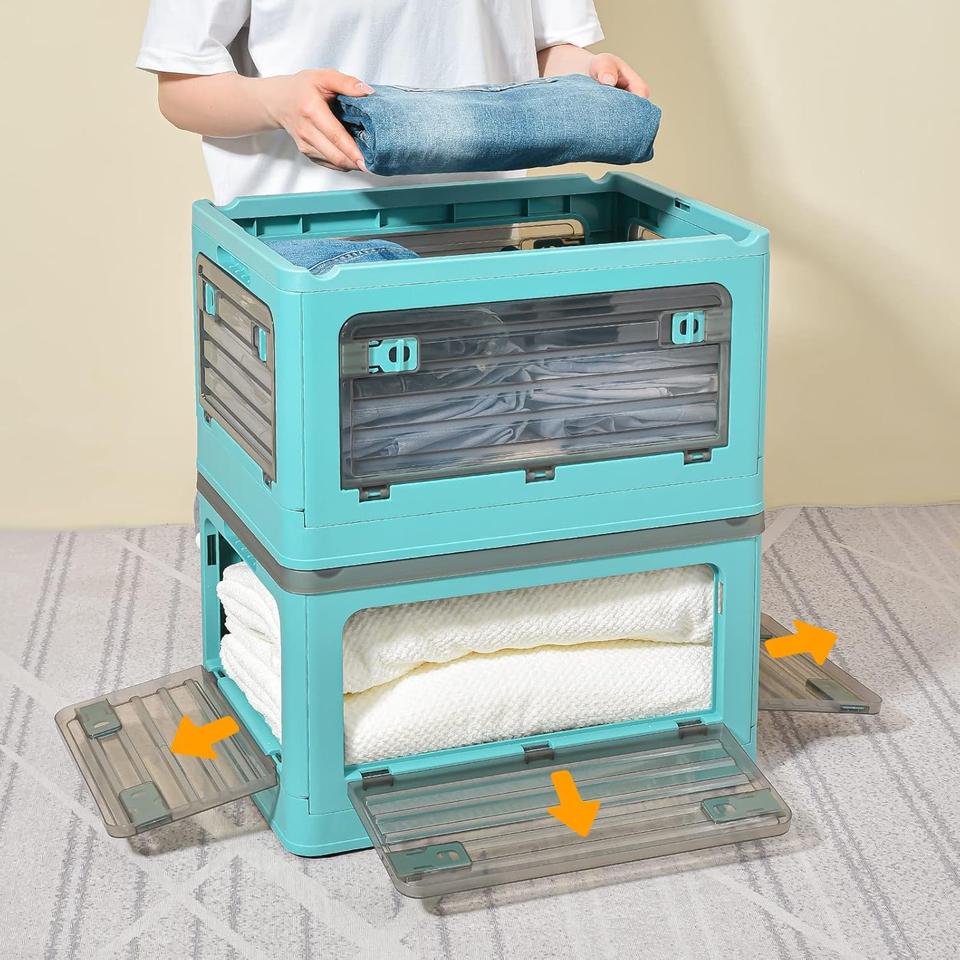 Boîte de rangement et caisse en plastique pliable et empilable avec couvercles et poignée Vêtements Jouets Livres Snack Épicerie
