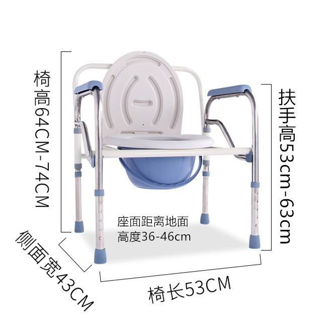 Chaise de toilette pliable semi-acier, hauteur 64-74 cm, pour personnes âgées, usage hospitalier, blanche