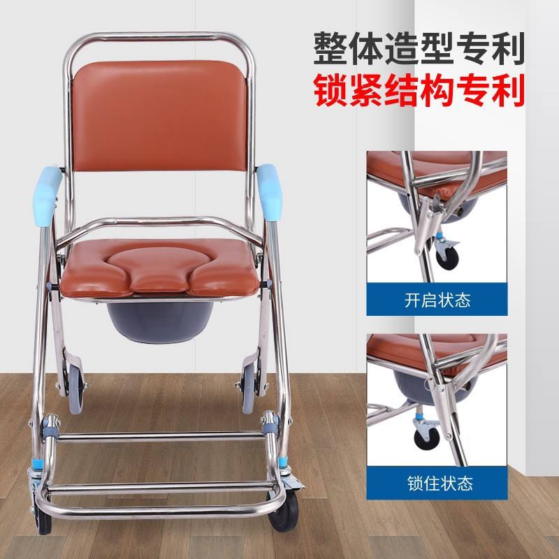 Chaise de toilette pliable avec roulettes pour personnes âgées et handicapées, usage hospitalier