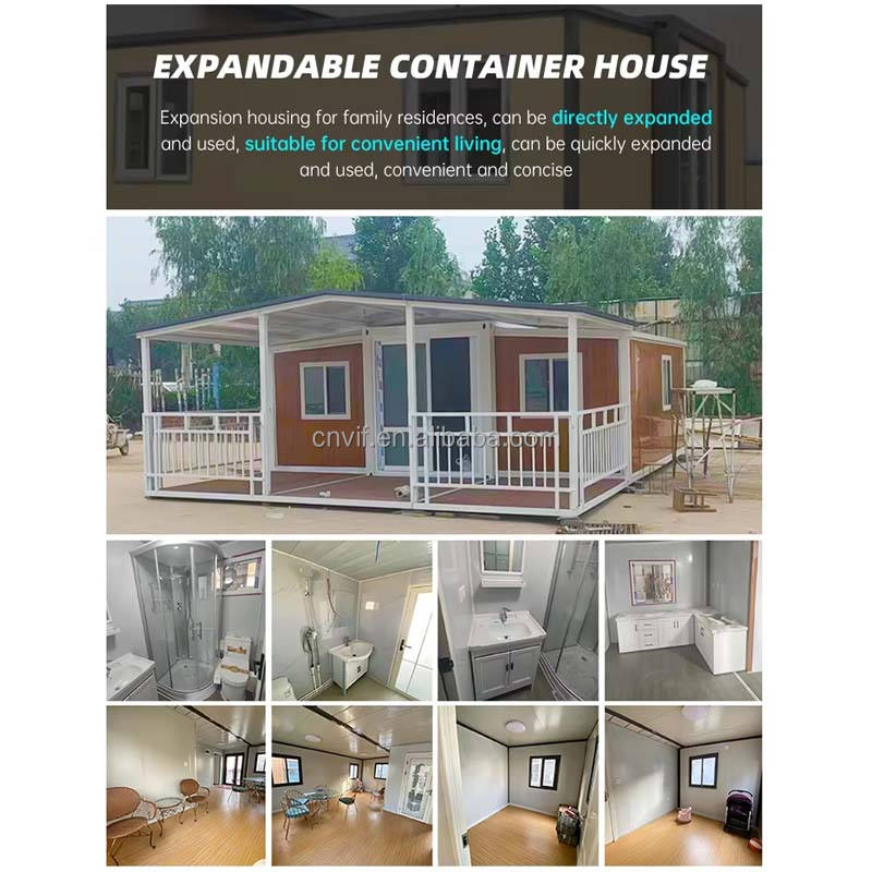 Maison conteneur pliable avec isolation : Maison conteneur préfabriquée extensible de luxe de 20 pieds avec 3 chambres