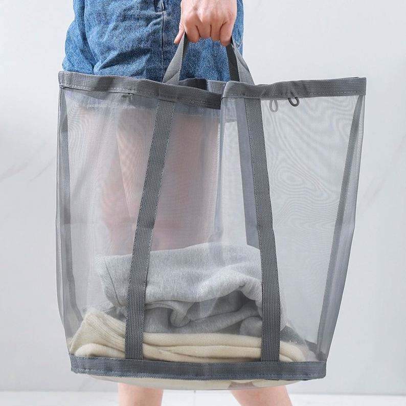 Sac de rangement pliable pour vêtements sales avec poignée Panier à linge suspendu en maille