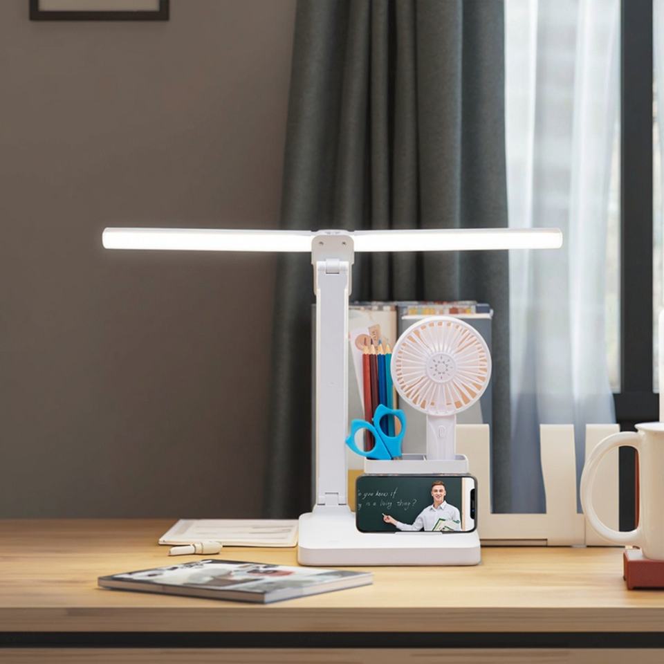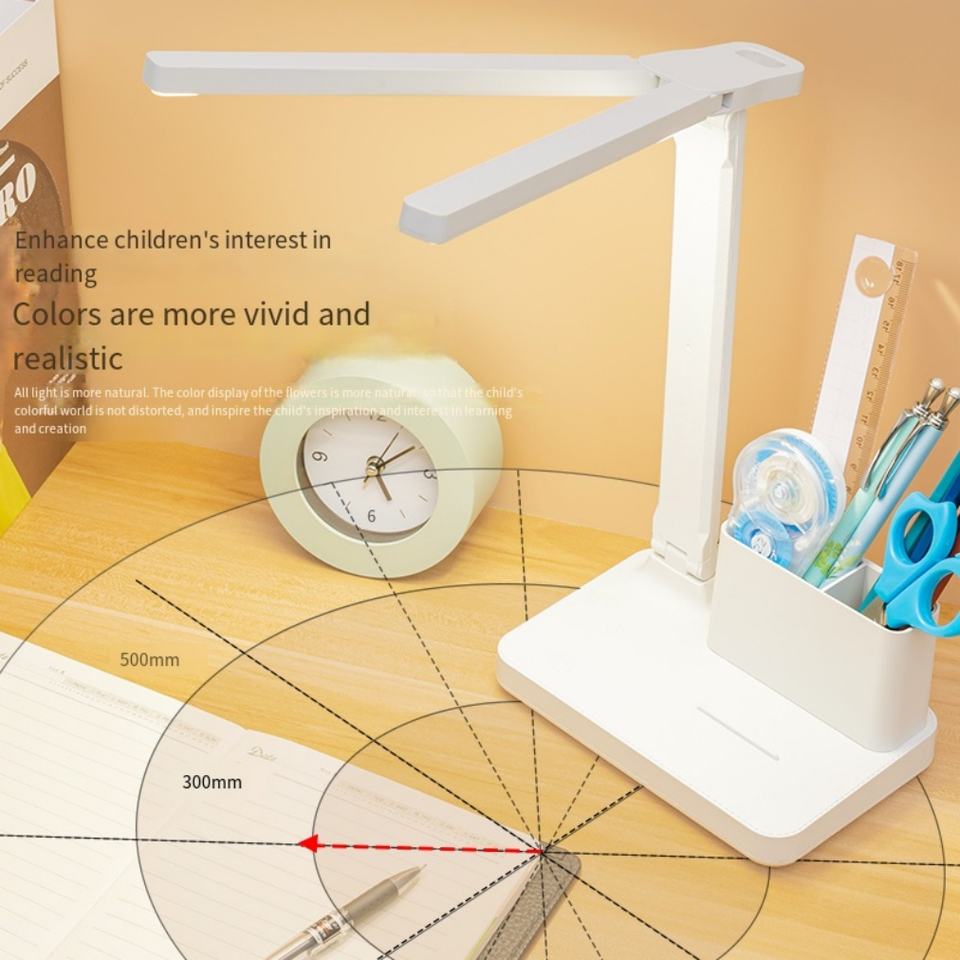 Lampe de bureau pliable à double tête, charge USB, fonction porte-stylo, luminosité tricolore, lampe de lecture LED protectrice pour les yeux