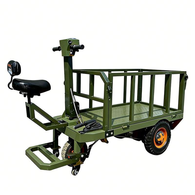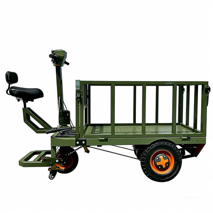 Chariot de transport électrique pliable à 3 roues, batterie longue portée, tout-terrain, robuste, pour charges lourdes, plateforme de transport extérieure