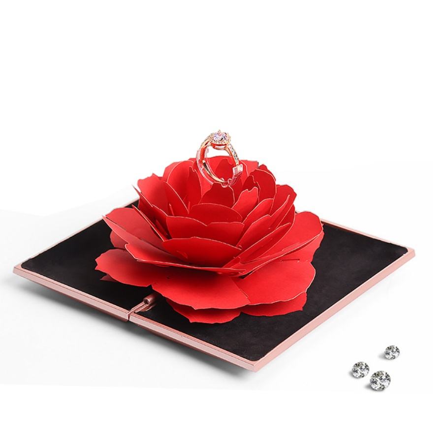 Item name:engagement packaging acrylic flock red rose pop up flower ring box