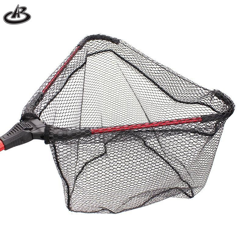 Épuisette de pêche pliable avec poignée télescopique pliable en aluminium maille durable avec revêtement en caoutchouc
