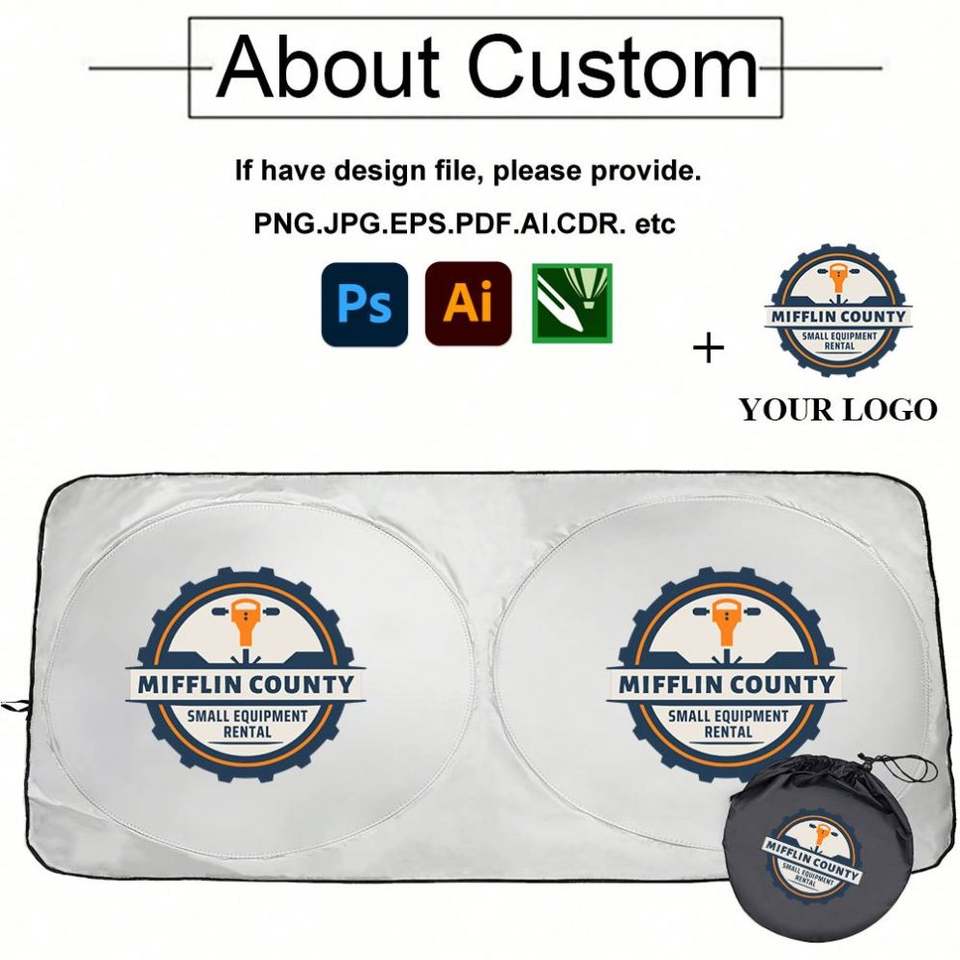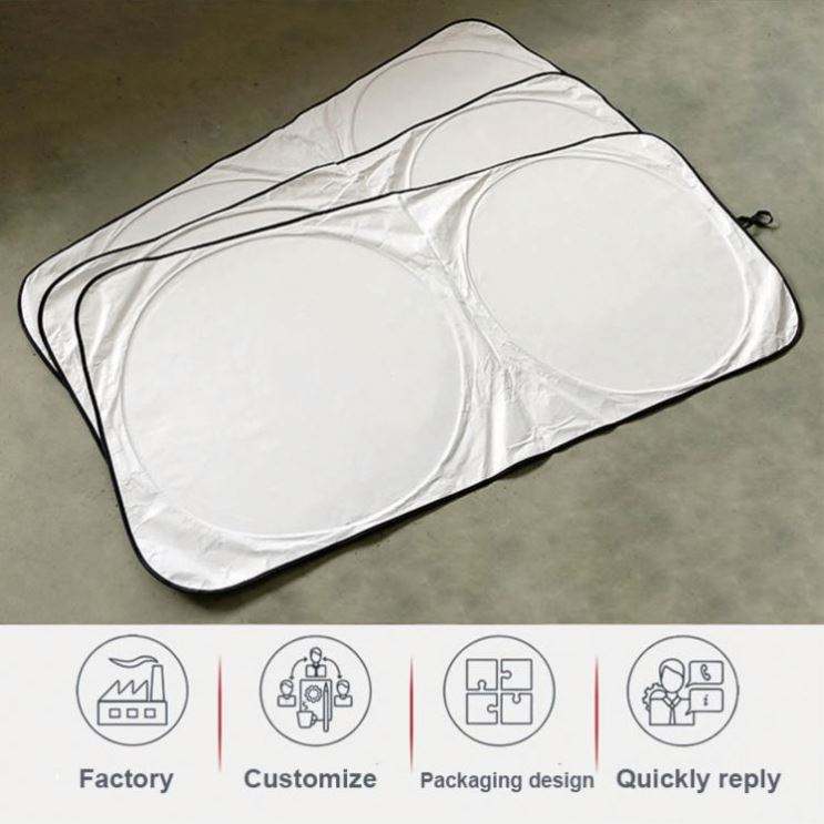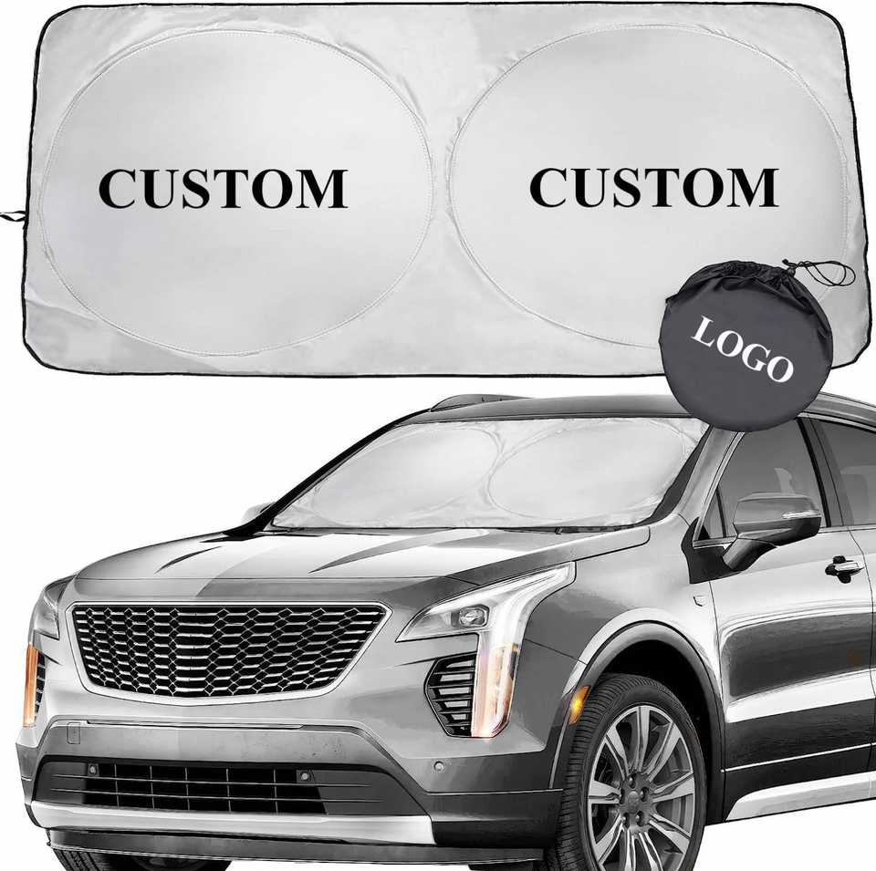 Pare-soleil pliable pour pare-brise avant, en polyester, anti-UV, pare-soleil pour voiture, pare-soleil double cercle pour voiture avec impression de logo personnalisé