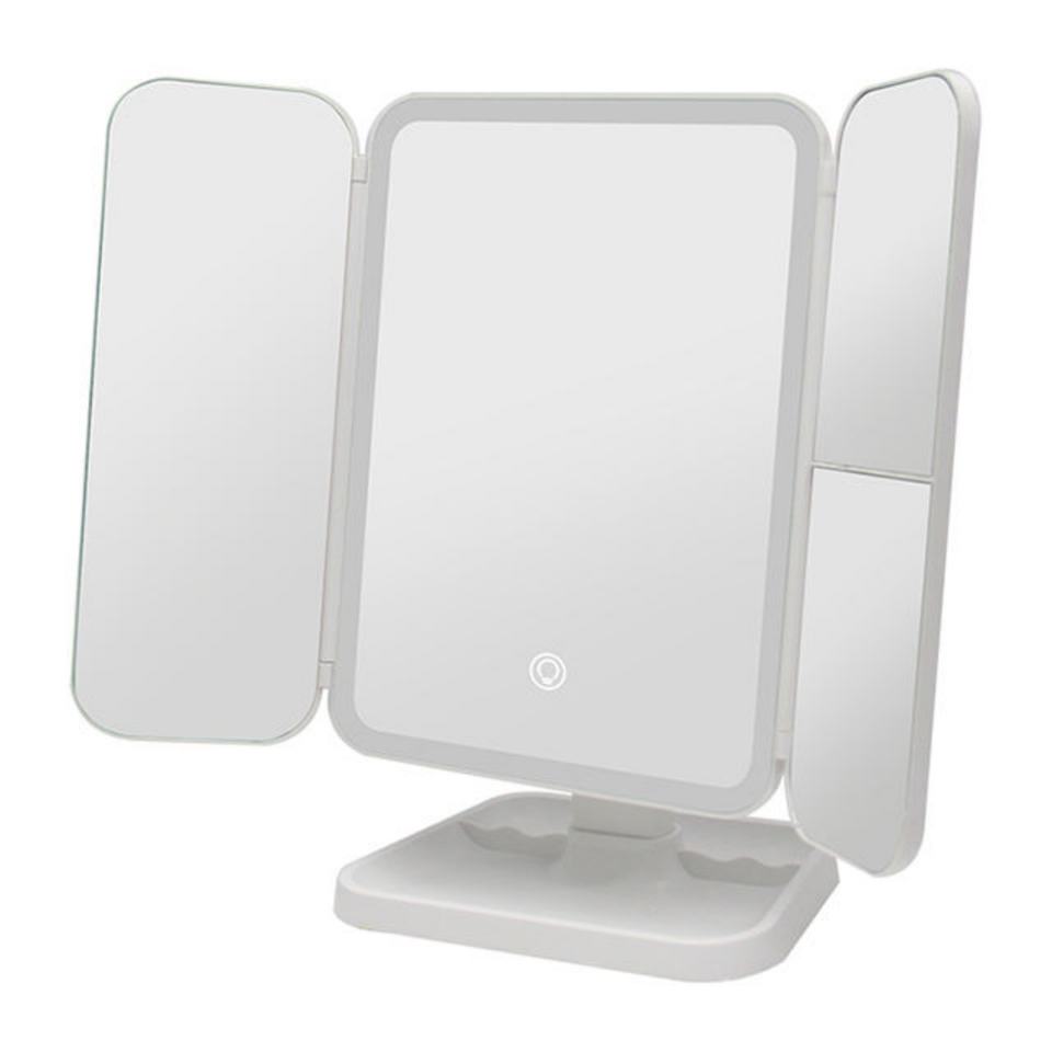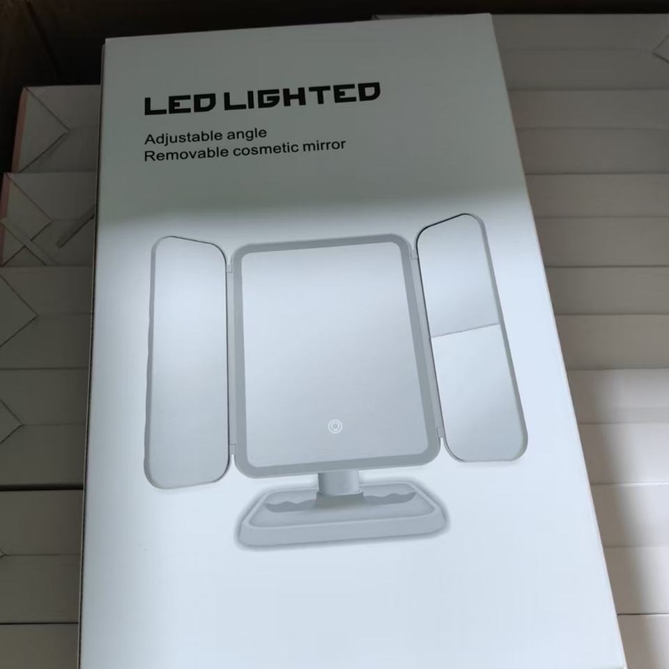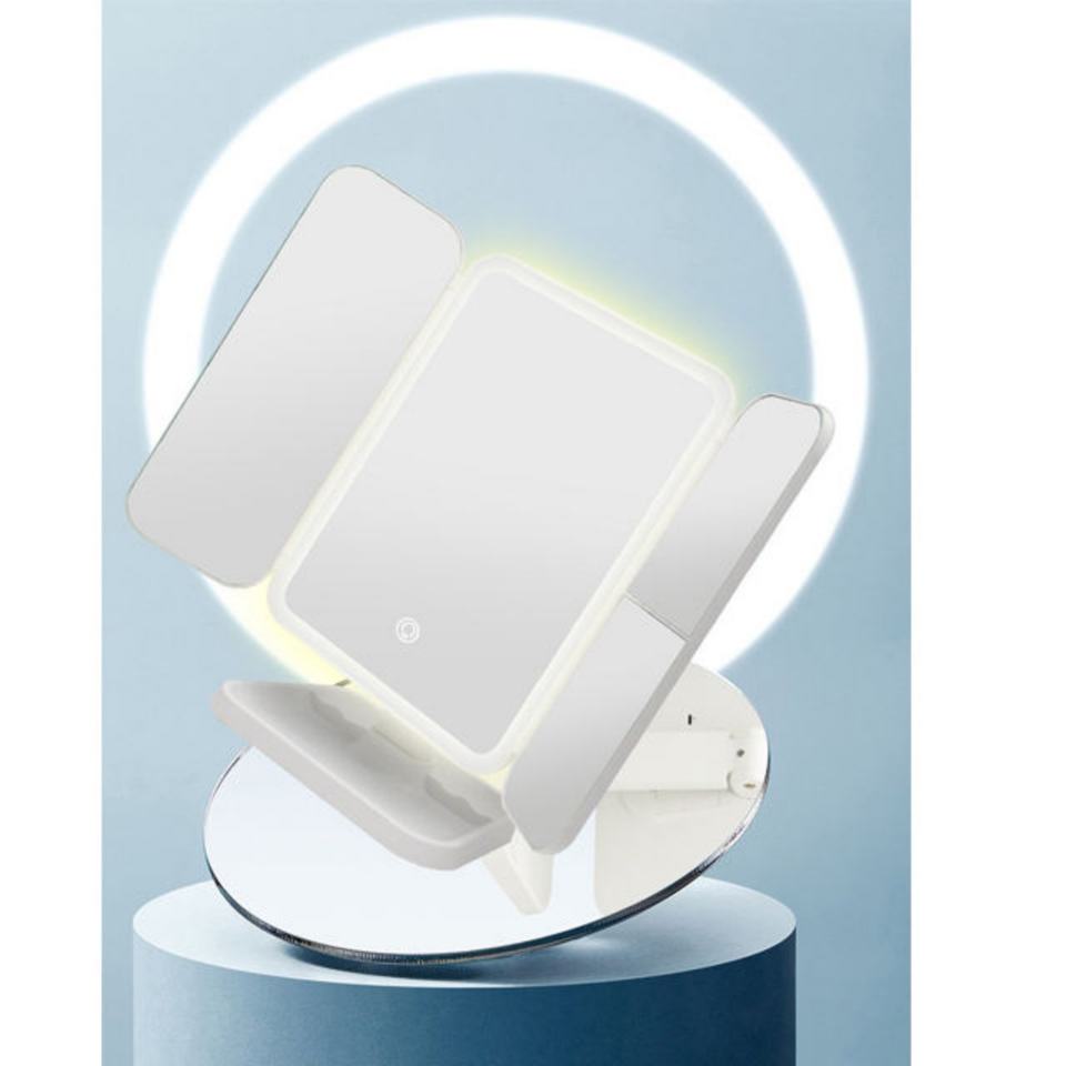 Miroir cosmétique LED pliable à la mode, miroir de maquillage à 3 volets, miroir grossissant 2X3X avec lumières LED, batterie rechargeable