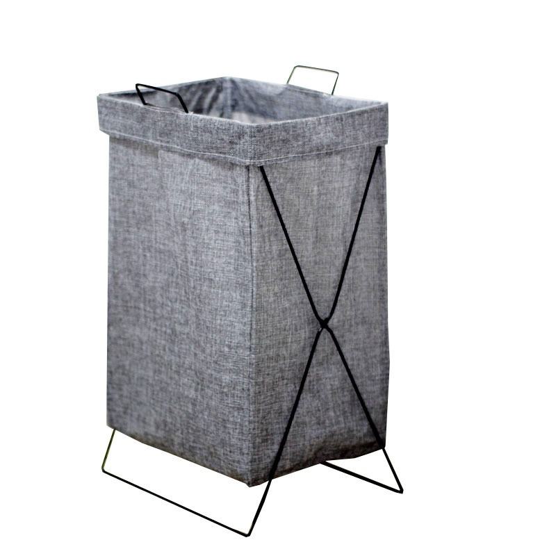 Panier à linge pliable grand format avec cadre en fer, sac de rangement imperméable pour vêtements sales, en tissu coton et lin