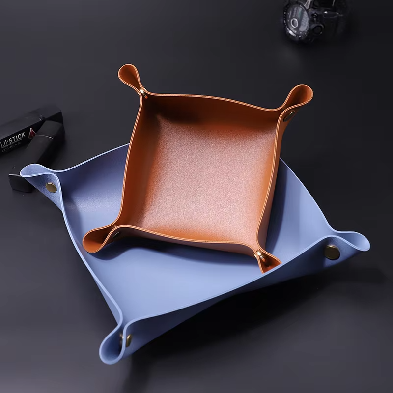 Plateau de rangement pliable en cuir, design personnalisable pour table, bureau, rangement de clés, monnaie, cosmétiques, bijoux - Portable, facile à nettoyer