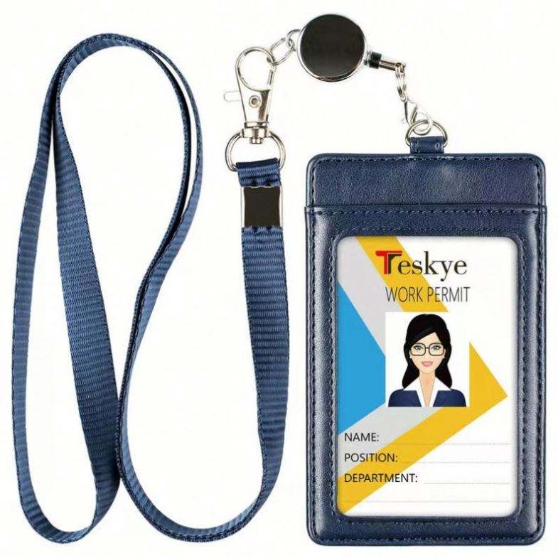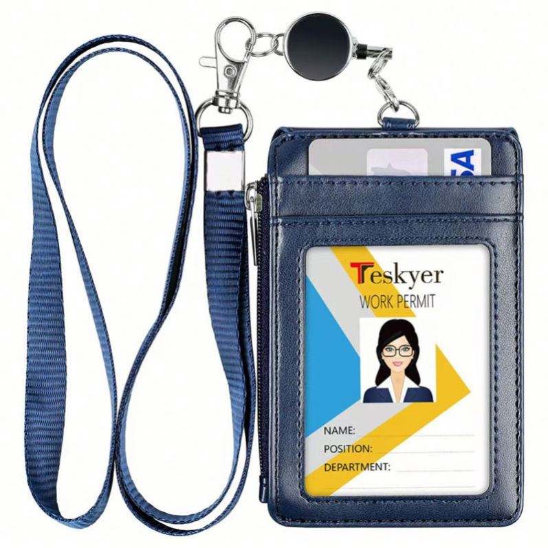Porte-cartes de travail pliable en cuir avec cordon, porte-badge, porte-carte d'accès au bus, étui de protection pour cartes