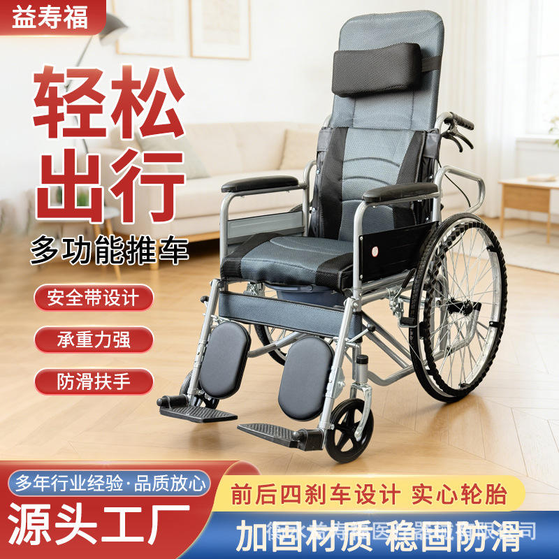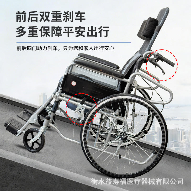 Fauteuil roulant manuel pliable et léger, inclinable, avec fonction toilette, pour seniors, roues en aluminium, frein en U, durable et confortable