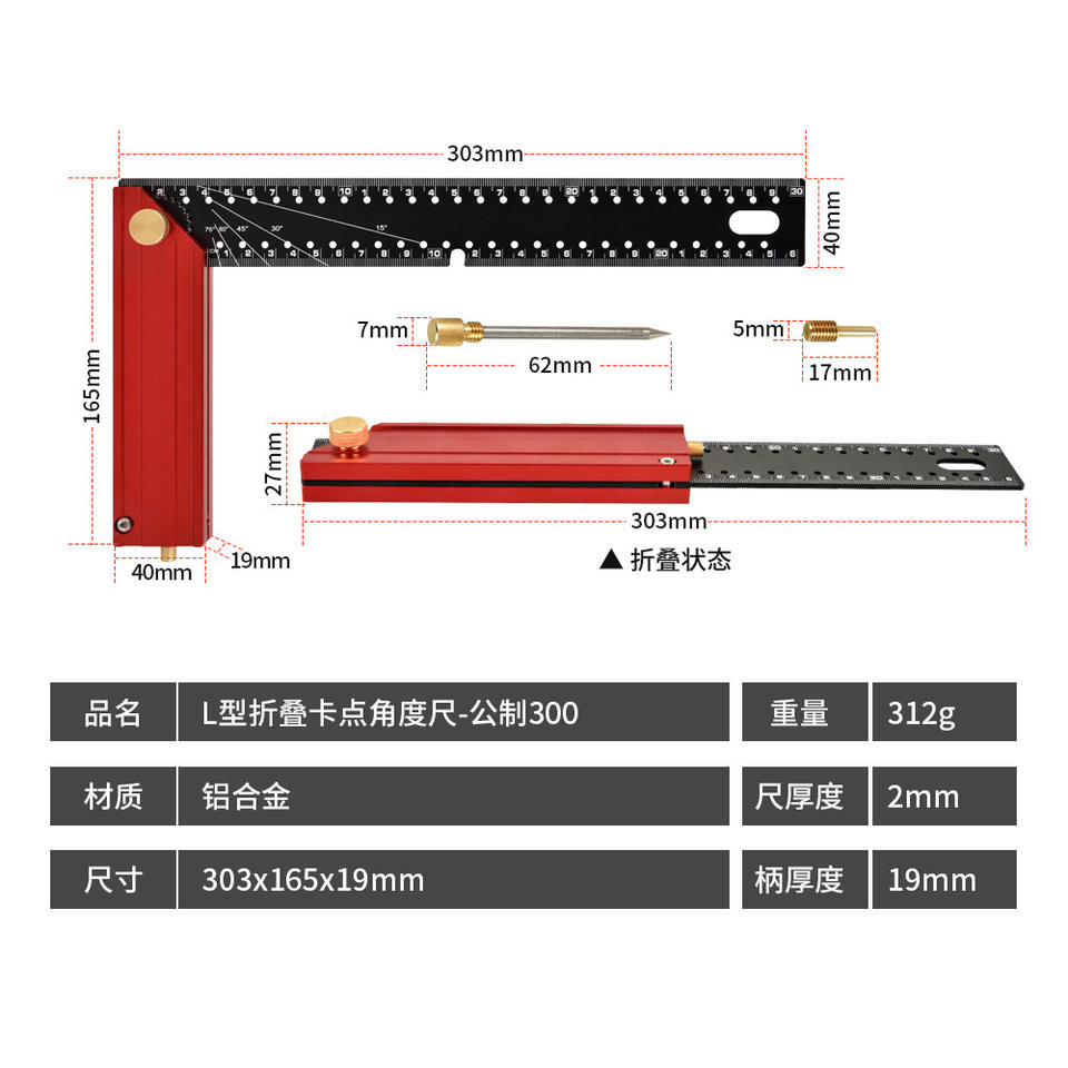 Specifications and Models: L-shaped folding angle gauge - metric 300