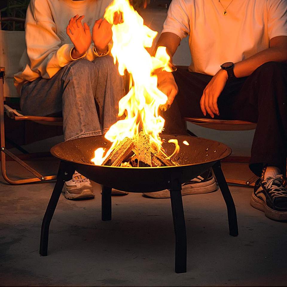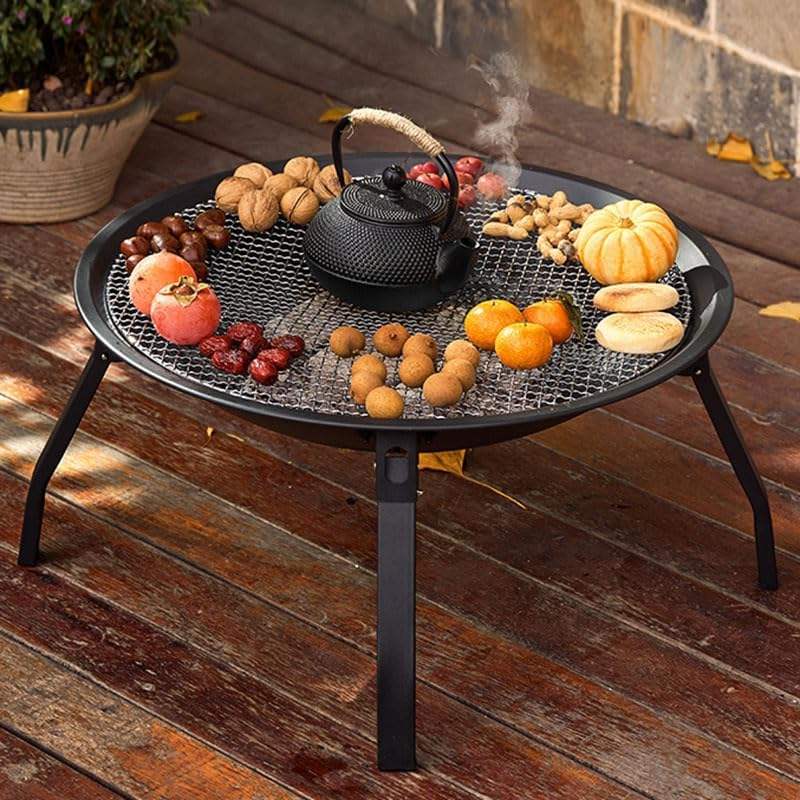 Brasero pliable d'extérieur pour bois, brasero de terrasse, cadre en acier durable, brasero pour le camping, barbecue en plein air avec couvercle