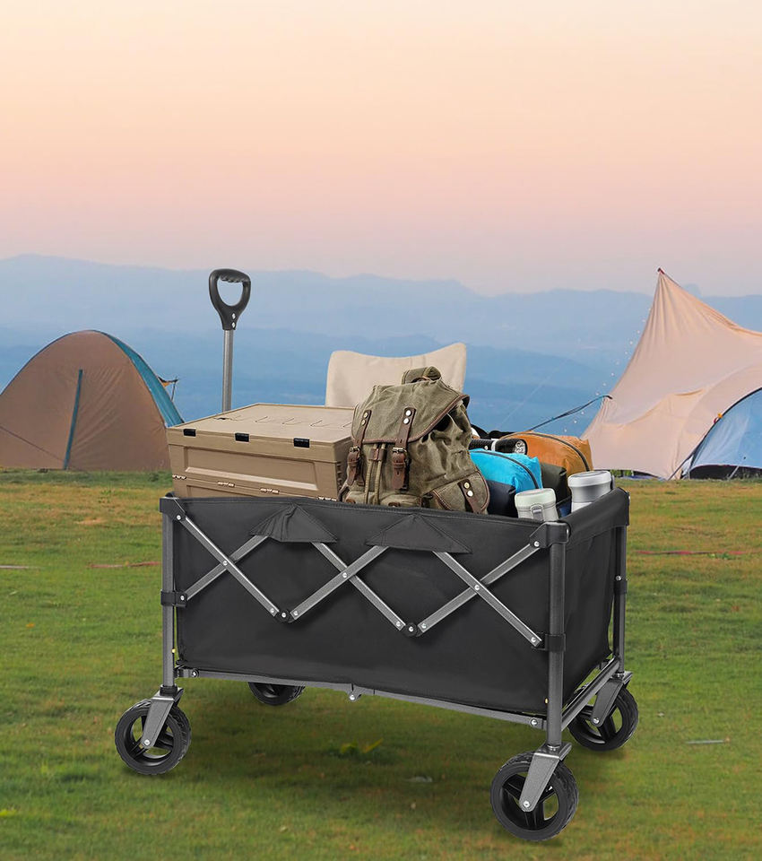 Chariot utilitaire pliable pour l'extérieur, roues réglables et détachables pour la plage et le jardin