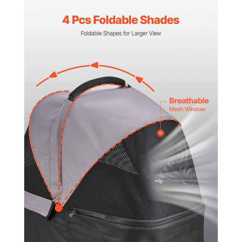 Foldable Pet Stroller 4 Wheeled Dog Cart Detachable Carrier Mesh Windows Portable Brake System Small Medium Pets 35 Lbs Model