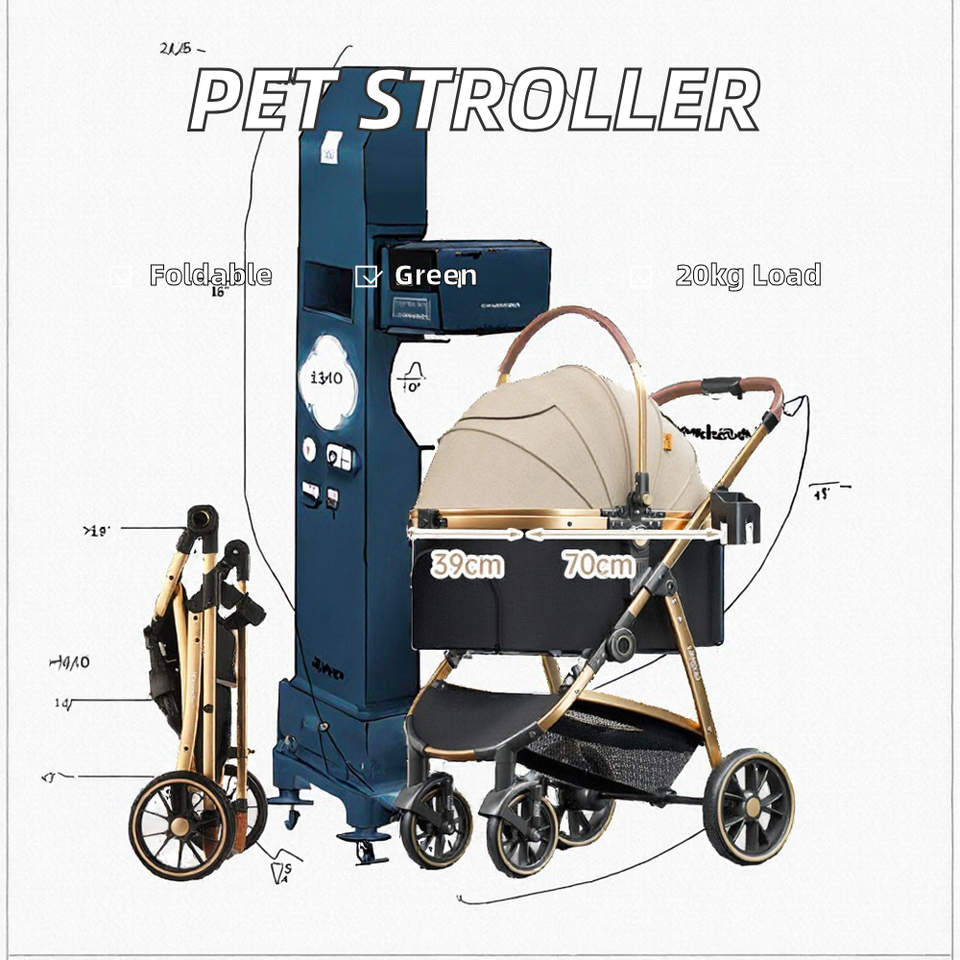 Poussette pliable pour animaux de compagnie avec grande capacité, charge de 20kg, design élégant pour animaux de compagnie de petite à moyenne taille