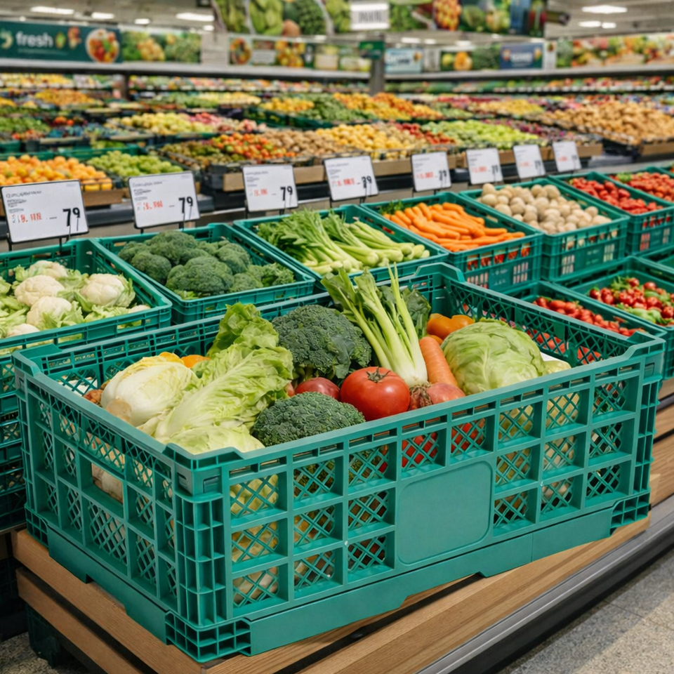 Bac de manutention pliable en plastique perforé, respirant, empilable et durable, pour la logistique de la chaîne du froid et les fruits frais