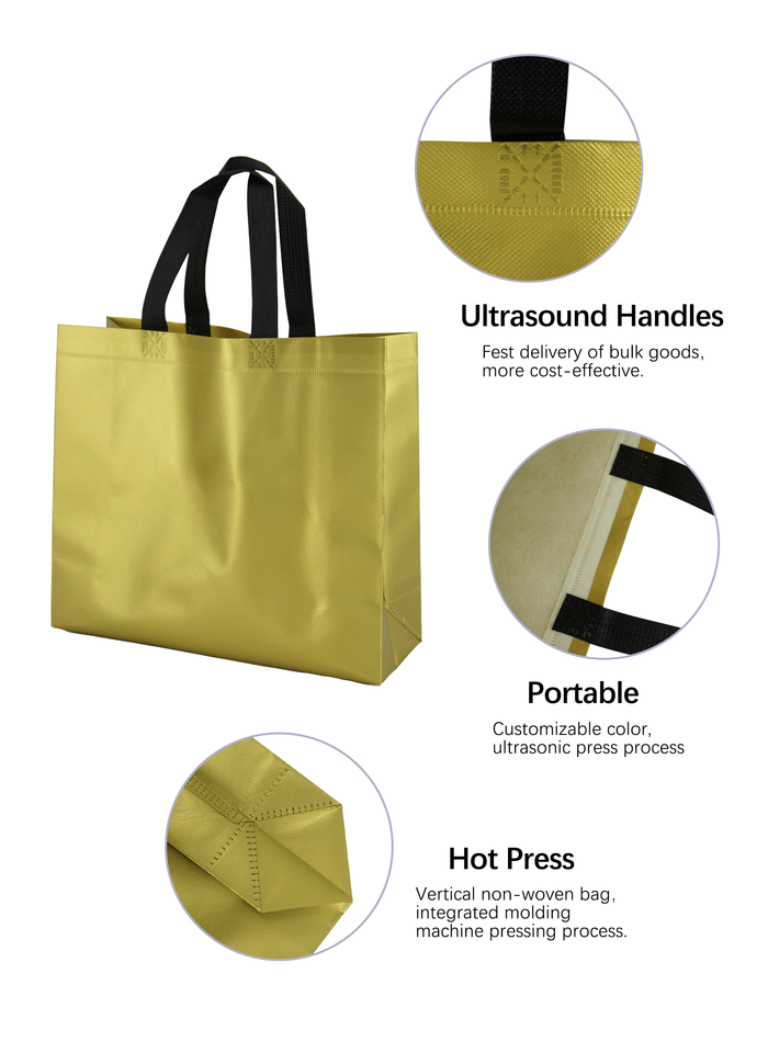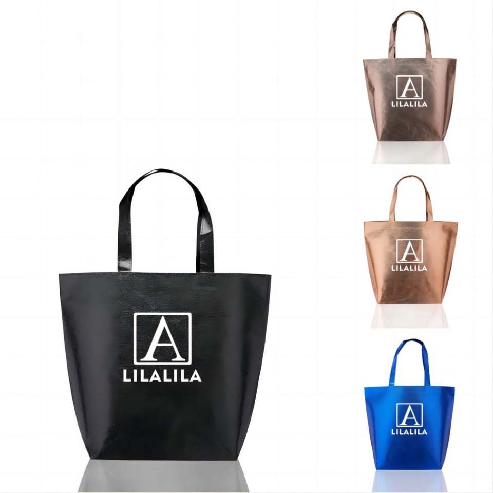 Sac de courses pliable promotionnel, écologique, recyclable, personnalisé, réutilisable, imprimé, en PP métallisé non tissé