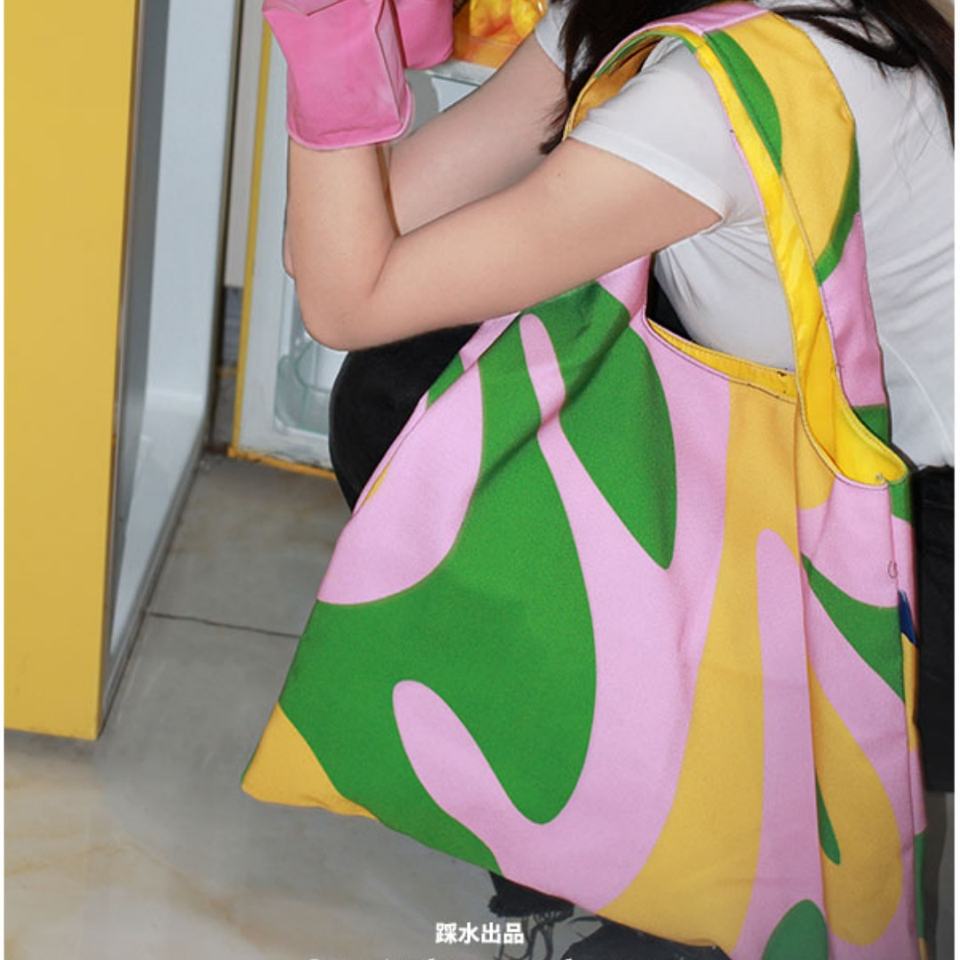 Sac d'épicerie pliable réutilisable en toile imprimée, sac de courses pliable, sac à bandoulière portable pour supermarché