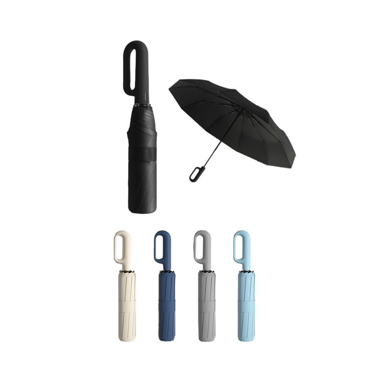 Parapluie pliable à boucle en anneau Couleurs unies Parapluie pliant automatique coupe-vent résistant aux UV avec poignée à crochet