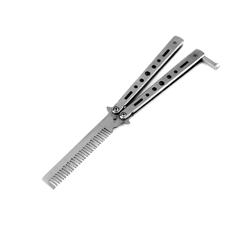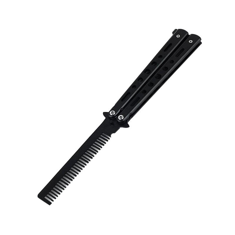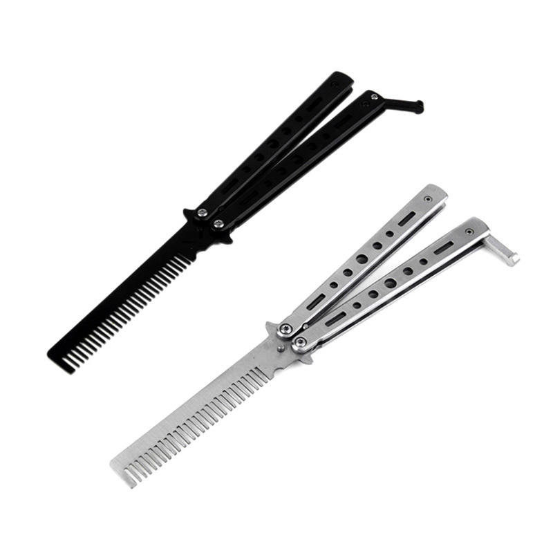 Pliable salon auto-défense peigne couteau papillon peigne barbier barbe et moustache peigne avec couteau
